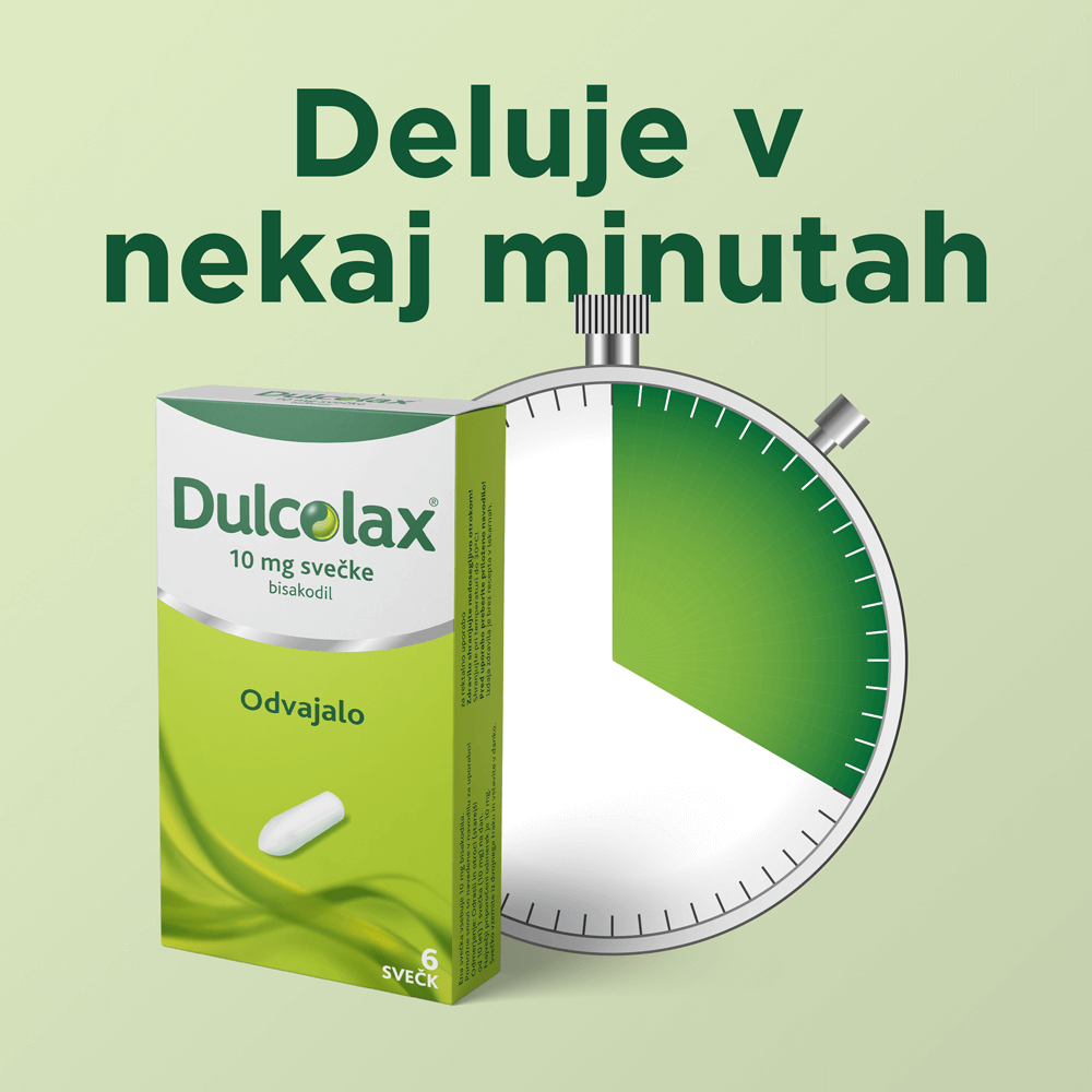 Dulcolax® je odvajalo v obliki svečk ali obloženih tablet. Vsebuje učinkovino bisakodil z delovanjem v debelem črevesu, ki spodbuja iztrebljanje, skrajša čas prehoda vsebine in zmehča blato.